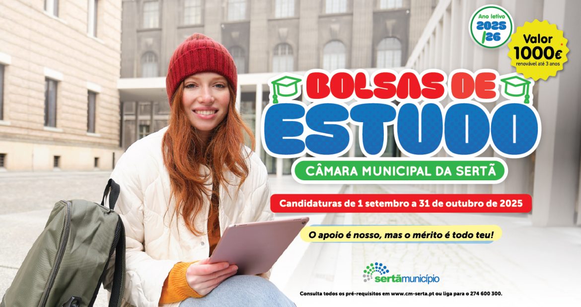 Decorre de 1 de setembro a 31 de outubro de 2025, o período de candidaturas para a atribuição de Bolsas de Estudo a estudantes do concelho da Sertã que frequentem, ou venham a frequentar, o ensino superior no ano letivo 2025/2026. A Câmara Municipal da Sertã dinamiza esta iniciativa pelo décimo segundo ano consecutivo, considerando a importância da educação no desenvolvimento da comunidade. O programa tem como principais objetivos fomentar […]