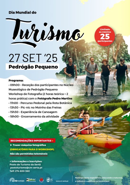 atividades Dia Mundial do Turismo Sertã canoagem Sertã Dia Mundial do Turismo 2025 fotografia turismo Sertã inscrições workshop fotografia Sertã Moinho das Freiras Sertã Município da Sertã National Geographic Portugal Pedro Martins fotógrafo Rota Botânica Sertã Sertã workshop fotografia