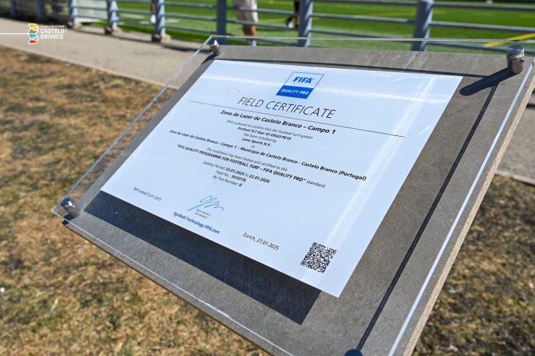 Foi descerrada a placa com a certificação FIFA Quality Pro, pelo Presidente da Câmara Municipal de Castelo Branco, Leopoldo Rodrigues, e pelo Presidente da Direção da AFCB, Manuel Candeias, que visitaram e apresentaram o complexo de relvados sintéticos do Parque Urbano da Zona de Lazer, que também está dotado com uma nova ala de balneários, posto médico e sanitários.