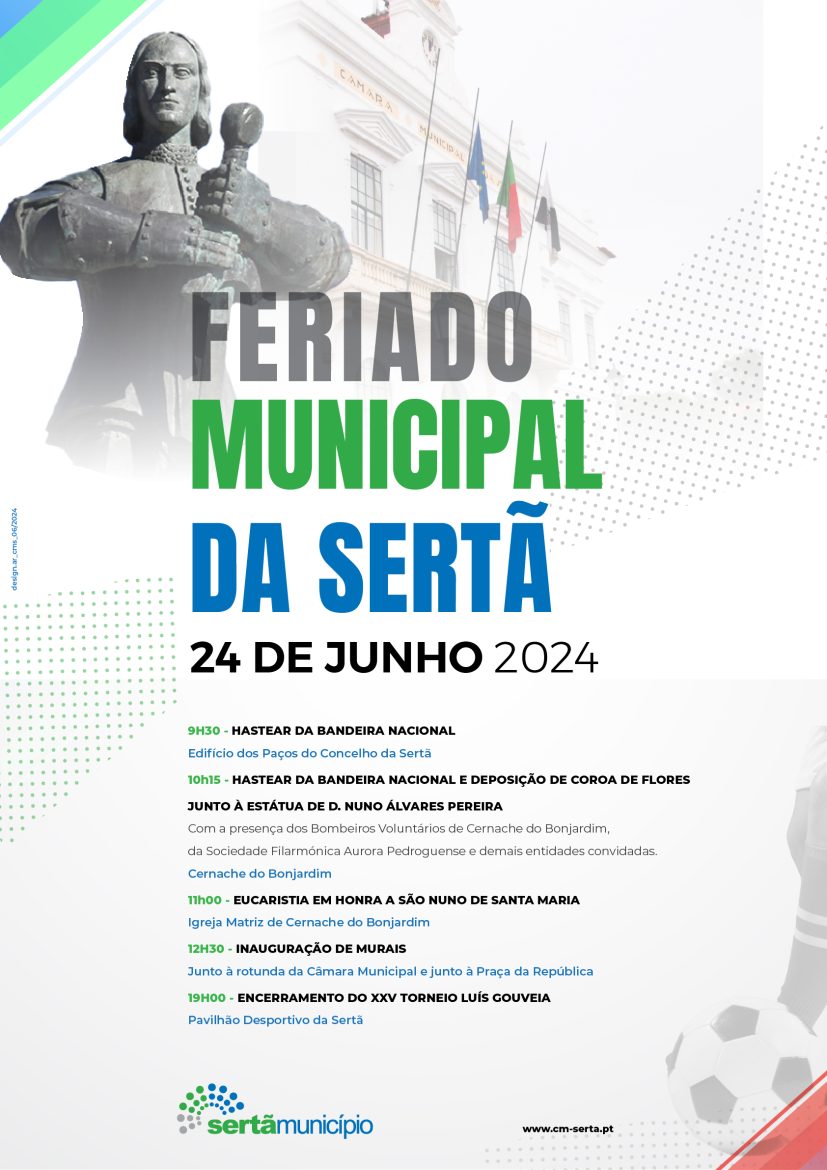 2025 celebrações Cernache do Bonjardim cerimónias Sertã eventos Sertã 24 junho Feriado Municipal Sertã Junho Nuno Álvares Pereira programa cultural Sertã São Nuno de Santa Maria torneio futsal Luís Gouveia