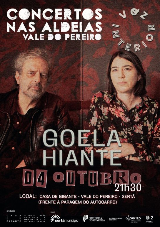 A Casa de Gigante – Associação Cultural Mandriões no Vale Fértil, organiza mais uma sessão de “Concertos Nas Aldeias”, desta feita para a apresentação do projeto Goela Hiante, que acontece no dia 4 de outubro, às 21h30. A entrada é livre.