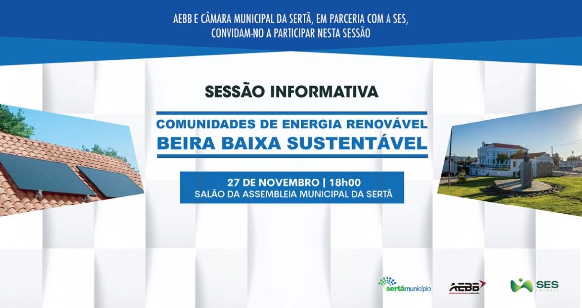 A AEBB – Associação Empresarial da Beira Baixa promove, no dia 27 de novembro, a partir das 18h00, uma sessão dirigida aos empresários do concelho, no Salão da Assembleia Municipal da Sertã, centrada no tema das Comunidades de Energia Renovável. Integrada no protocolo de colaboração entre a AEBB e o Município da Sertã, a sessão contará com intervenções de Carlos Miranda, Presidente da Câmara Municipal da Sertã, e de Miguel […]